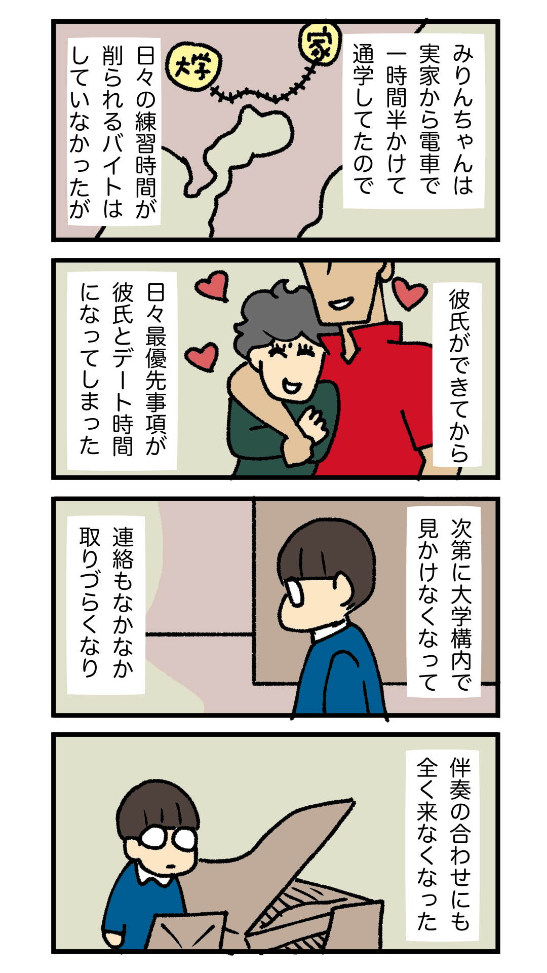夏休みを前に新たにできた恋人にのめり込むみりんちゃん。練習もサボるようになり、なかなか連絡も取れなくなります。そんなある日、みりんちゃんの方から「会えないかな?」と留守電が入ってきました。