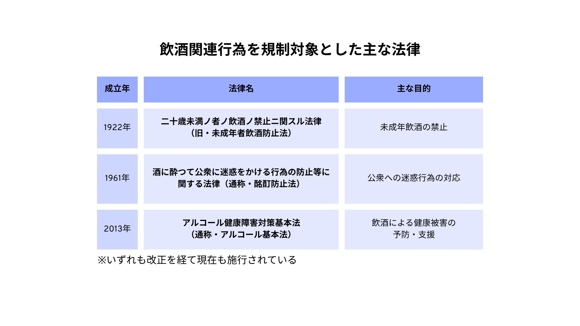 小野田:法規制の観点からみて、飲酒に関連する行為を定めた法律は限定されています。