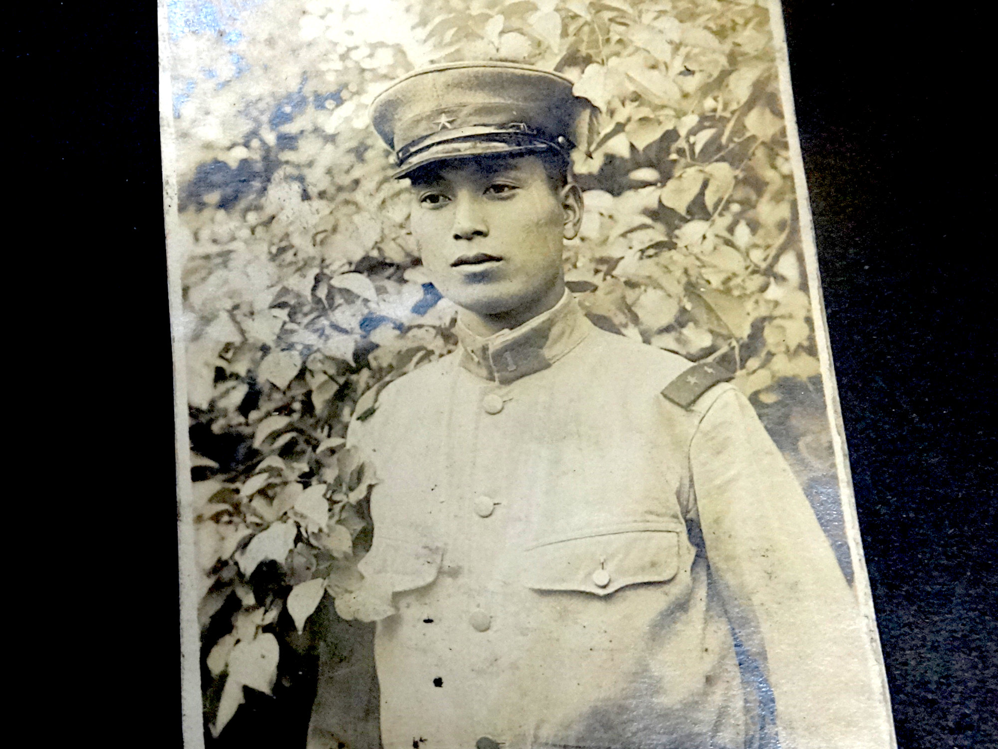 「キリッとして、いい男でしょう」と語るのは、PTSDの日本兵家族会の代表・黒井秋夫さん。写真に写っているのは、出兵当時の父・慶次郎さんの姿だという。