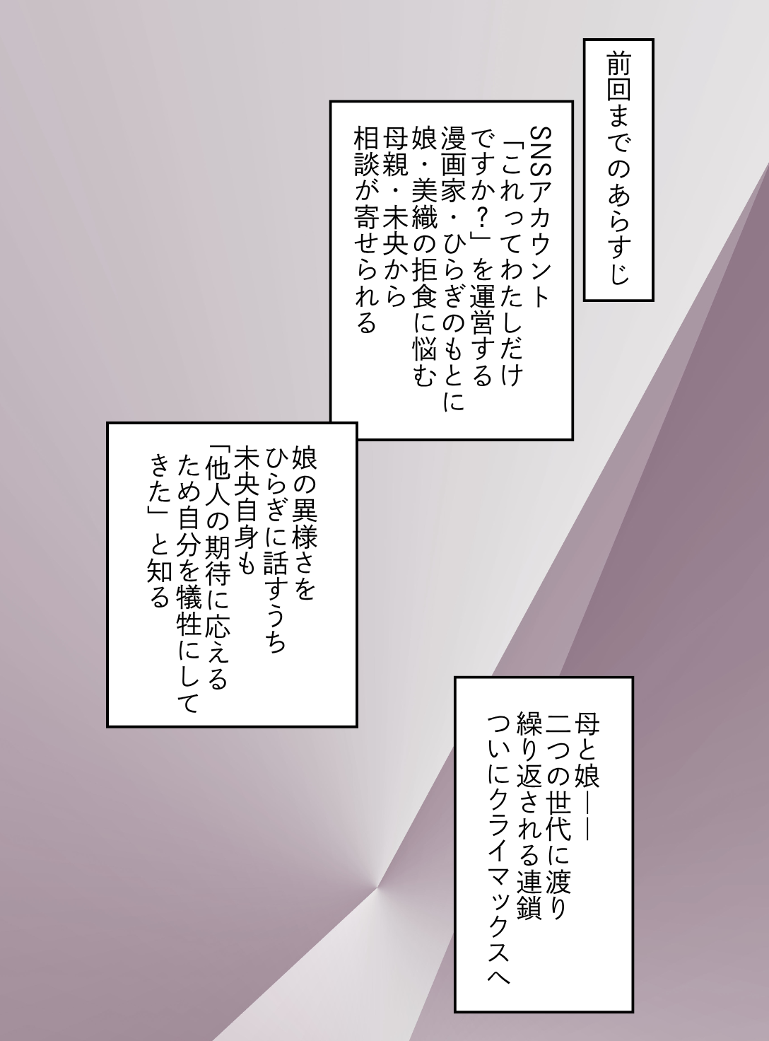〈ストーリー〉「私がされて嫌だったことを、娘にしてる――?」母親・未央は、娘・美織を心配しながらも、“正しさ”や“普通”を手放せずにいた。娘の拒食を「病気」と呼びたくなかった。真面目で、気にしすぎる子――そう言い聞かせてきた。けれど、いつの間にか自分もまた、「恥ずかしい」と口にしていたのだった。
