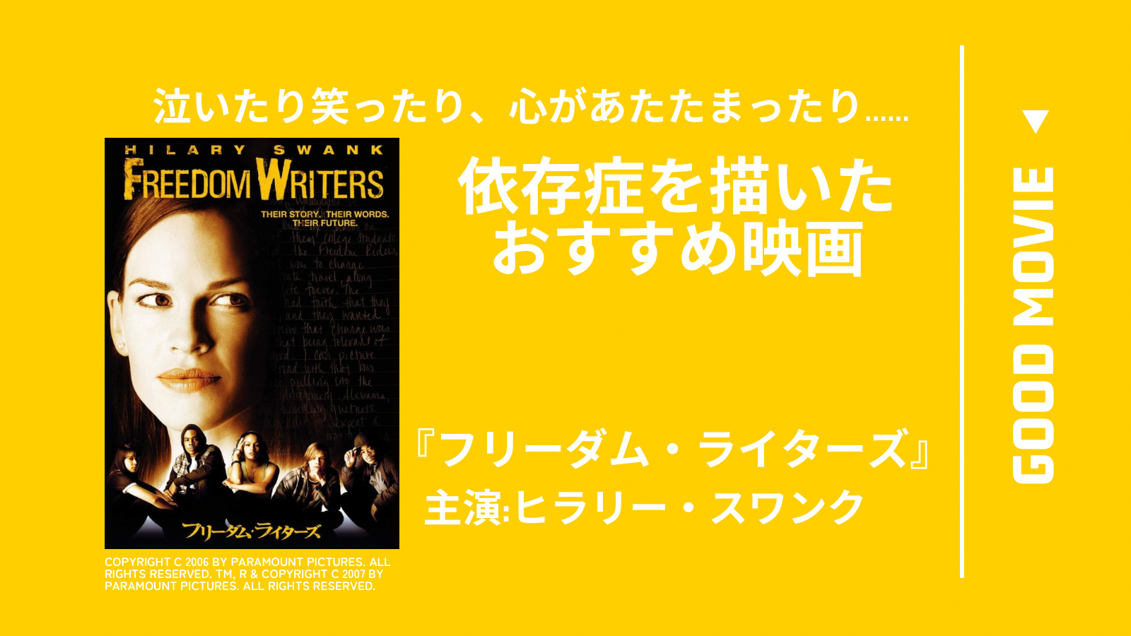ロス暴動から2年、1994年ロサンゼルス郊外の公立高校で起きた奇跡の実話。新任教師から手渡されたノートに書き始めた日記が、心が荒んだ生徒たちの人生を大きく変えていく……。オスカー女優のヒラリー・スワンクが初めて製作総指揮、自ら主演。